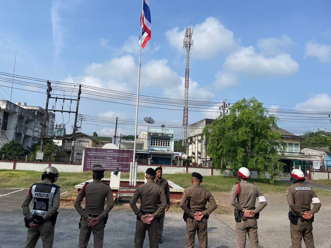 พ.ต.ท.สุริยา ทอง สุวรรณ สวญ.สภ.ตลาดใหญ่ นำข้าราชการ ตร. ร่วมเคารพธงชาติประจำสัปดาห์