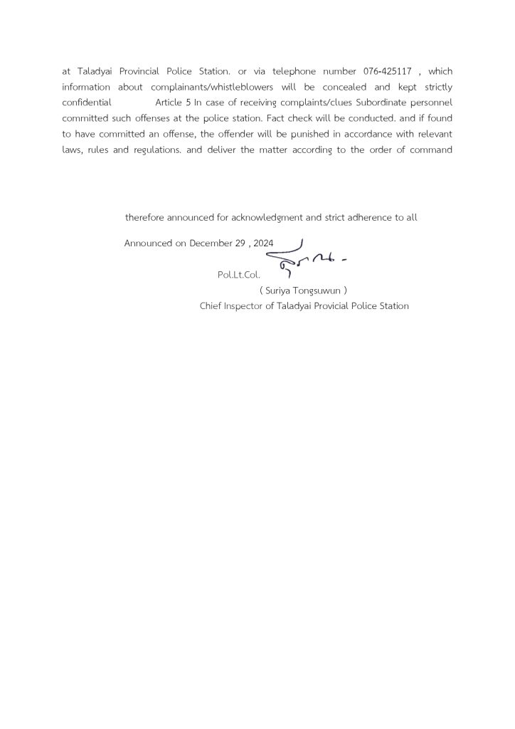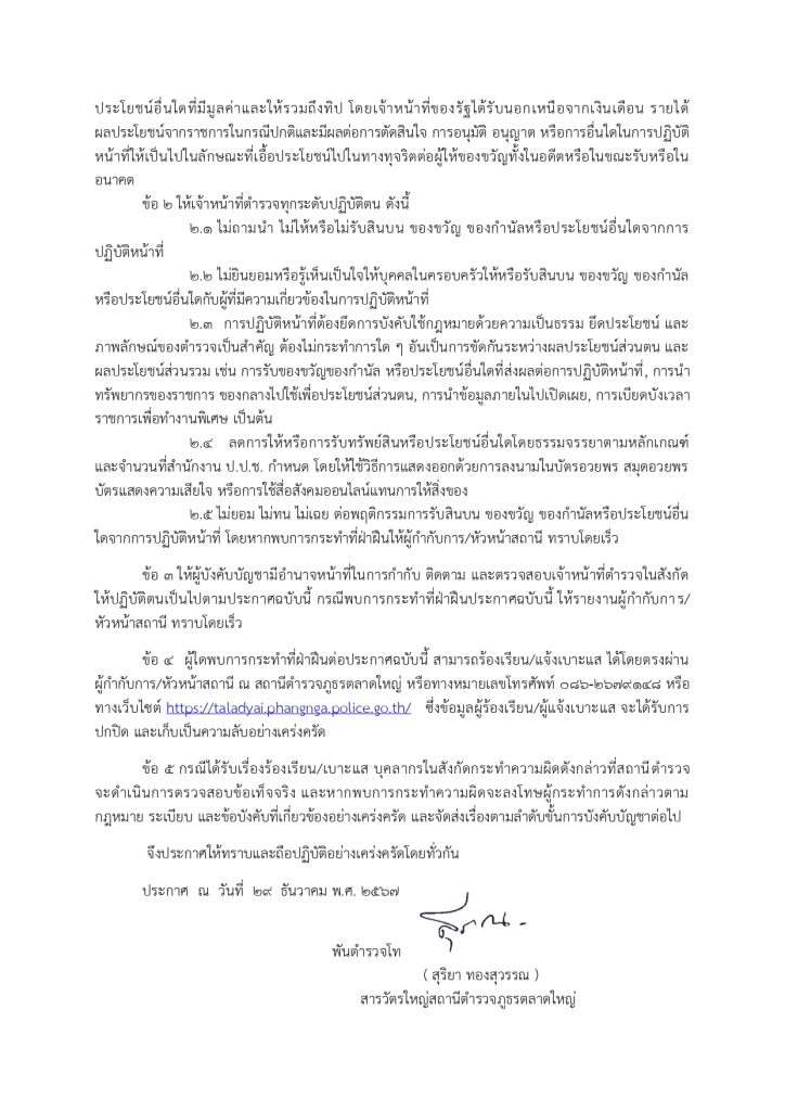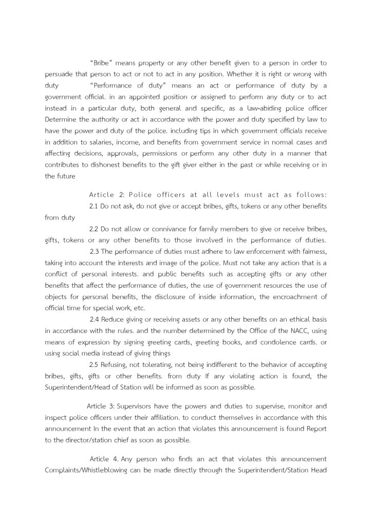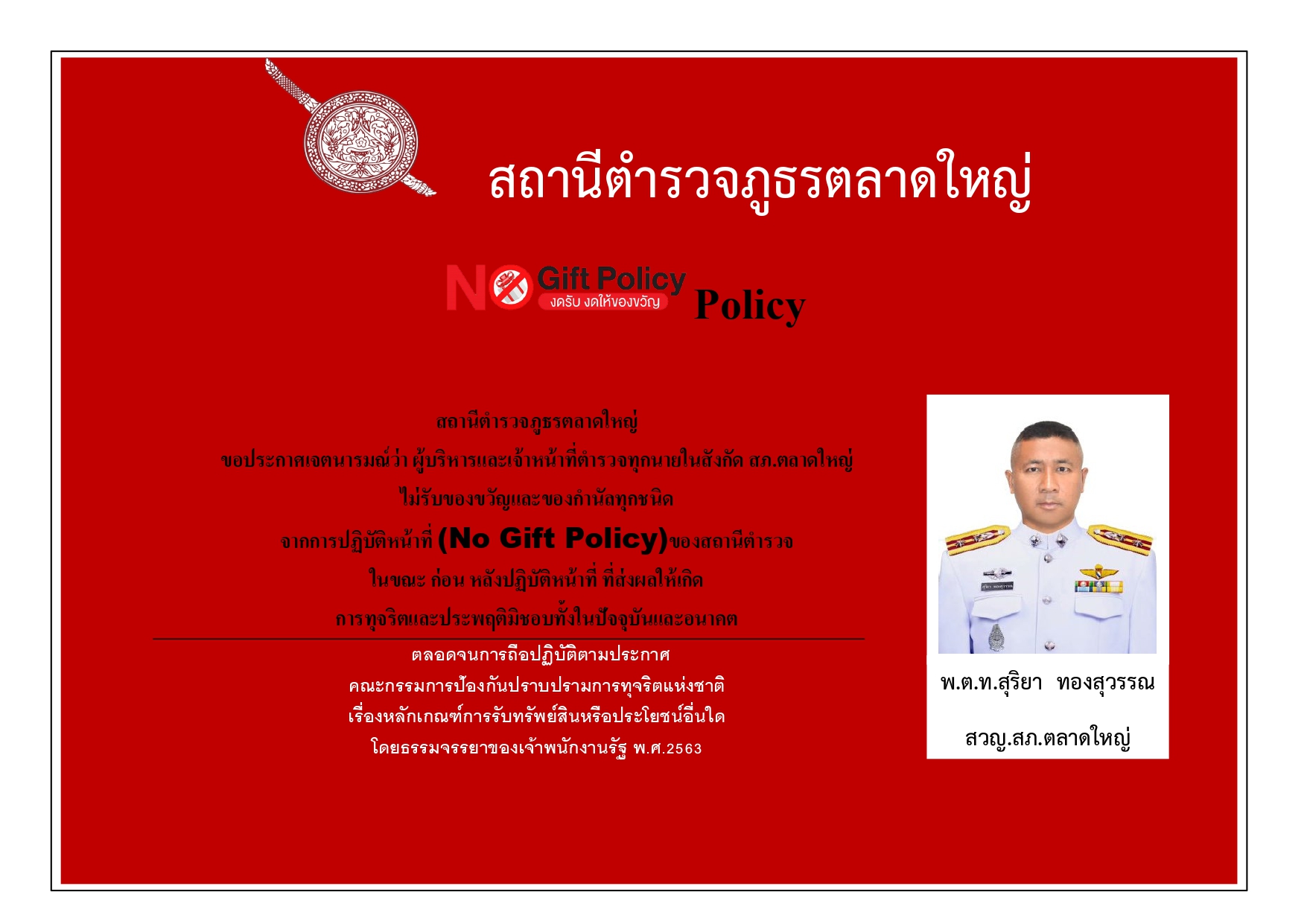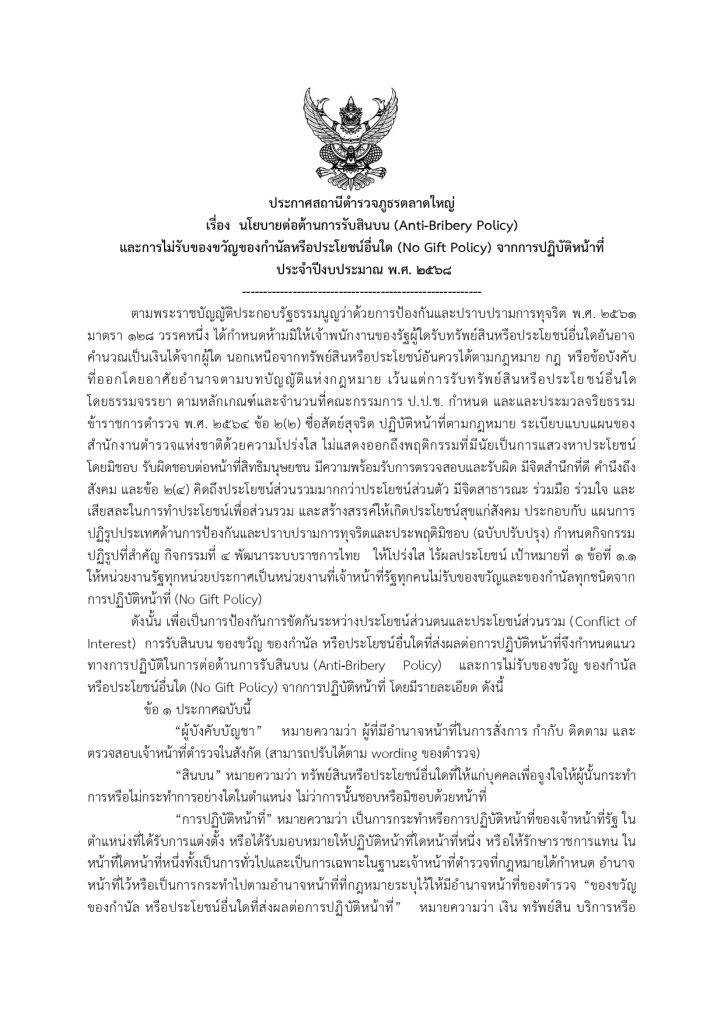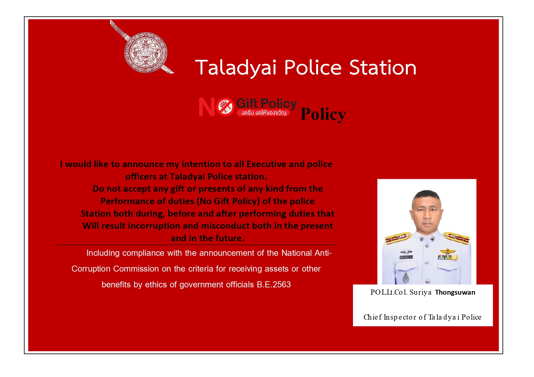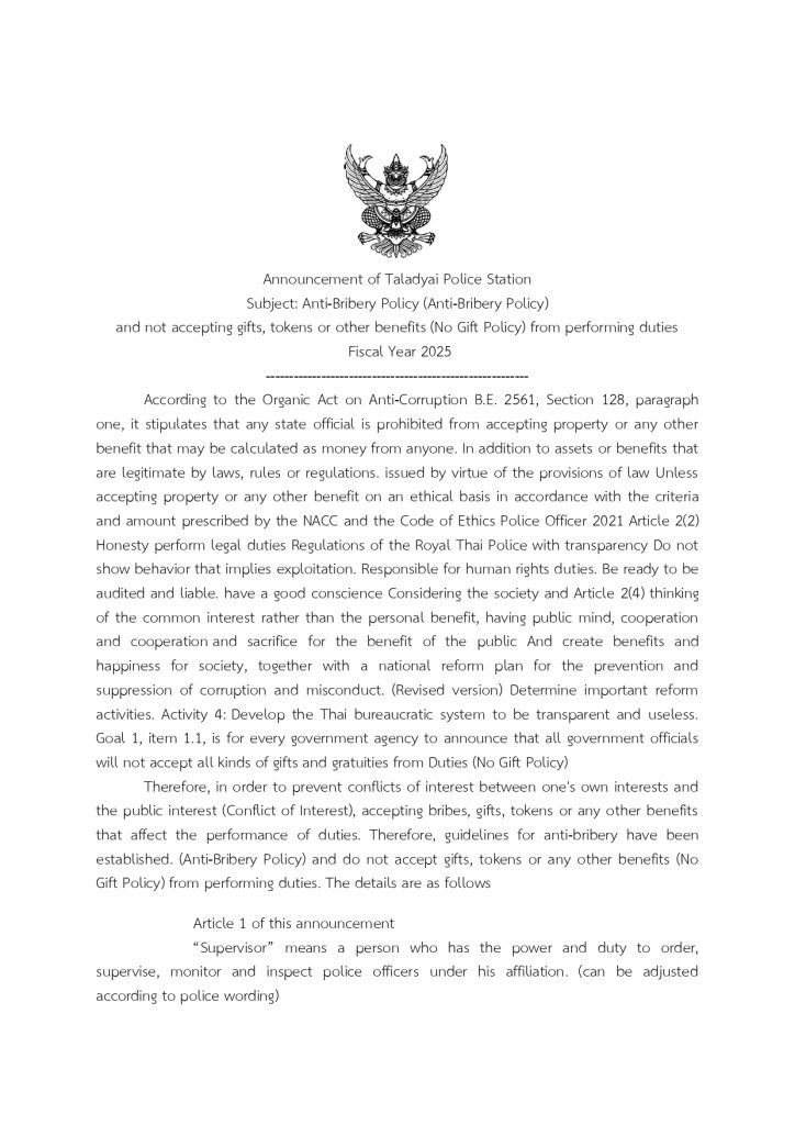 ติดประกาศนโยบายต่อต้านการรับสินบน ณจุดบริการและจุดประชาสัมพันธ์